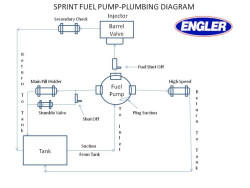 HOW TO PLUMB UP FOR A STUMBLE VALVE ON A SPRINT CAR - USE A EN-85105 TWO WAY SHUT OFF OR WATERMAN WAT-44605 STUMBLE VALVE IS ENG-STUMBLE-VALVE